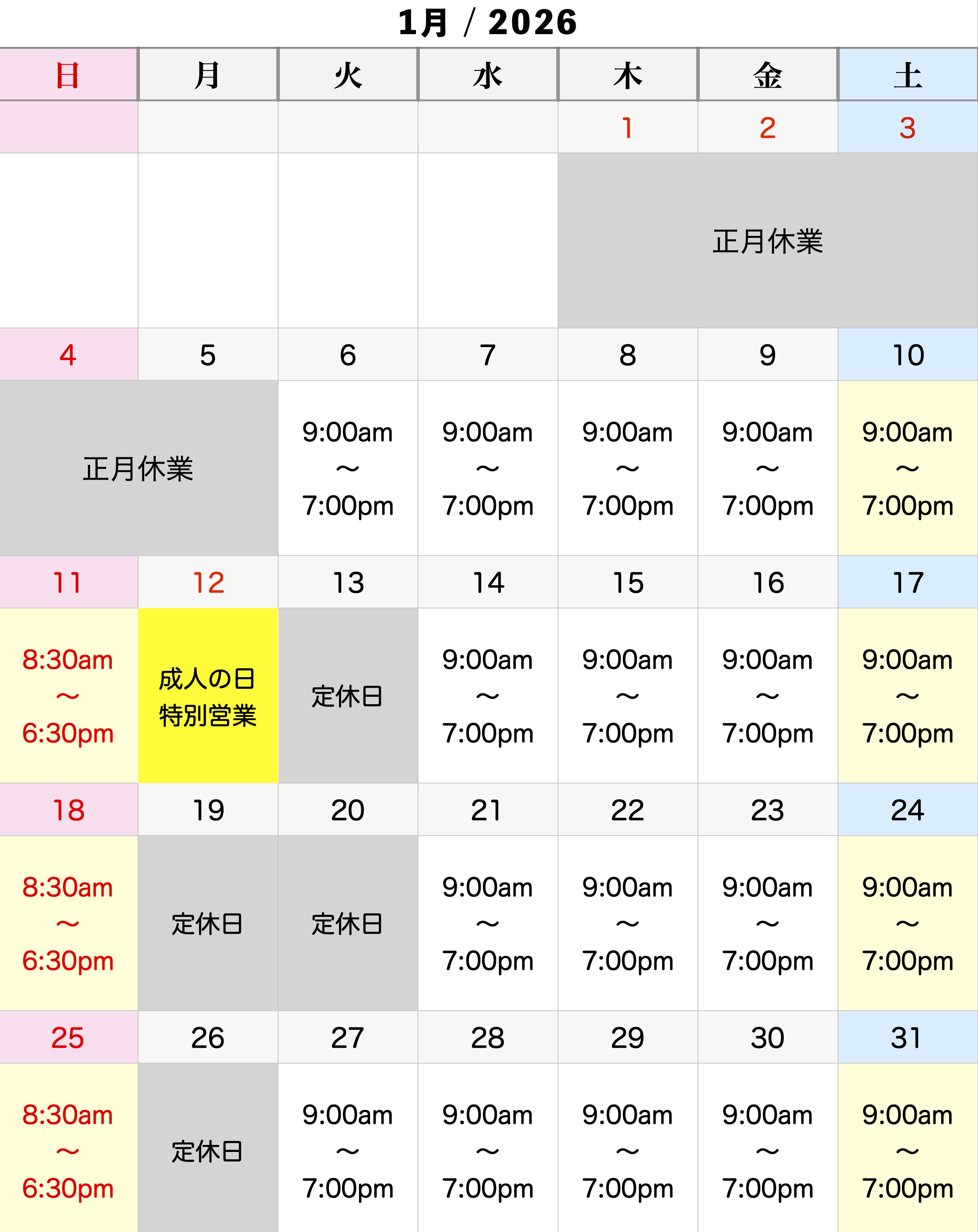 2025年度卒業生の方のご予約受付は’26年1月14日より開始する予定です。よろしくお願いいたします。